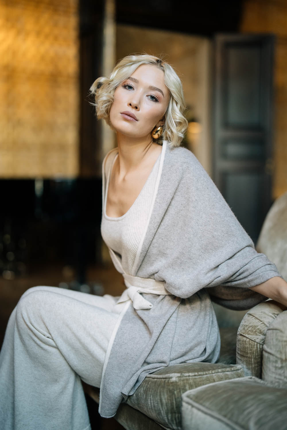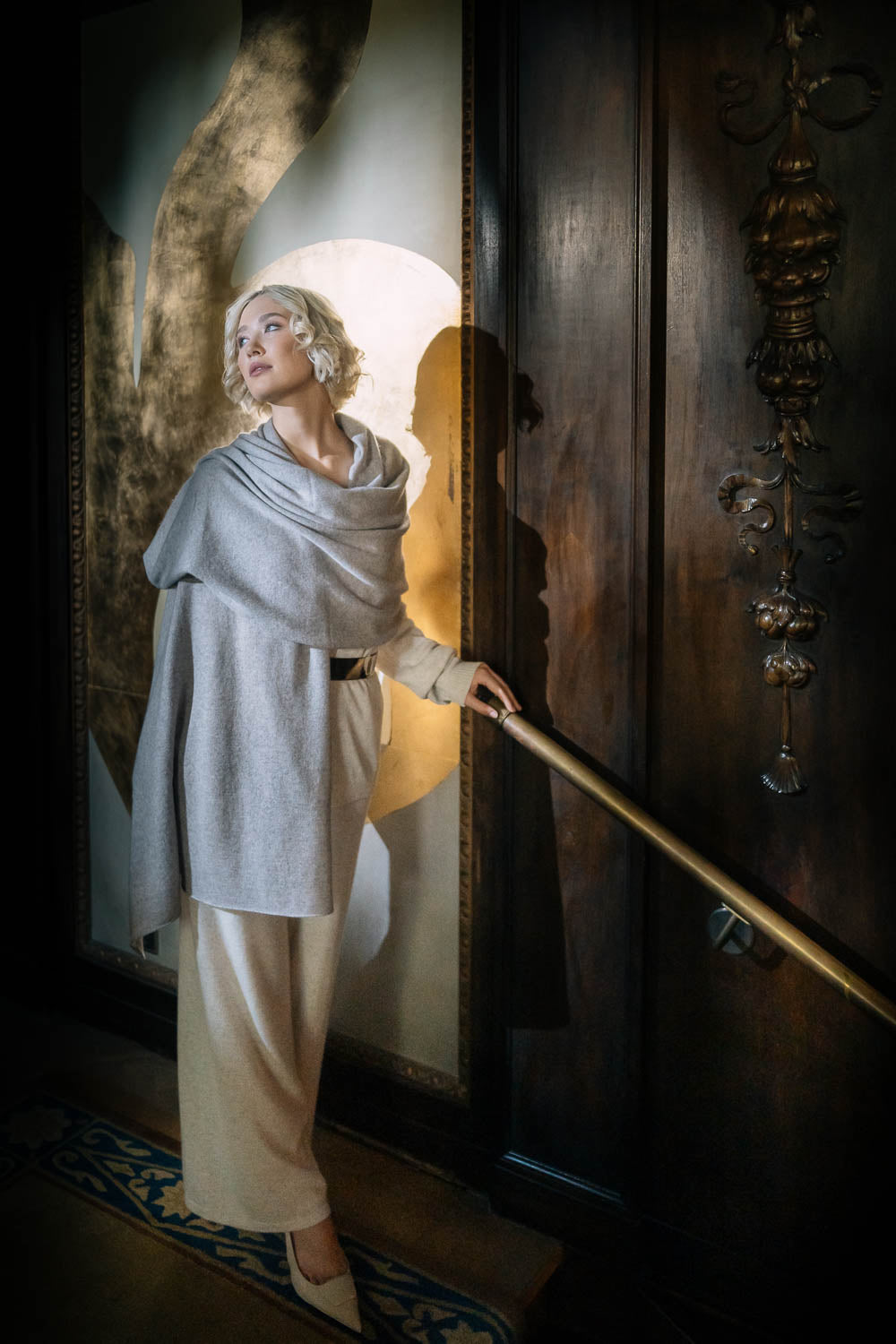 Schal taupe aus Kaschmir- & Merinowolle