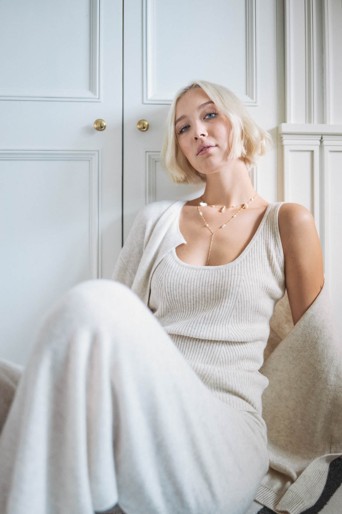 Dieses gerippte Top aus einer himmlischen Mischung aus Kaschmir- & Merinowolle ist der Inbegriff von eleganter Schlichtheit. Das Material schmiegt sich sanft an die Haut, ist herrlich weich und bietet gleichzeitig die perfekte Balance zwischen Wärme und Leichtigkeit. Die feine Rippstruktur verleiht dem Top eine dezente Textur und sorgt für eine figurschmeichelnde Passform. Unten abgerundet, fällt es sanft über die Hüften und schafft eine fließende, feminine Linie, die den Look lässig und doch raffiniert macht. Ob solo getragen oder als edles Layering-Piece – dieses Top ist so komfortabel und stilvoll, dass du dich sofort verlieben wirst!